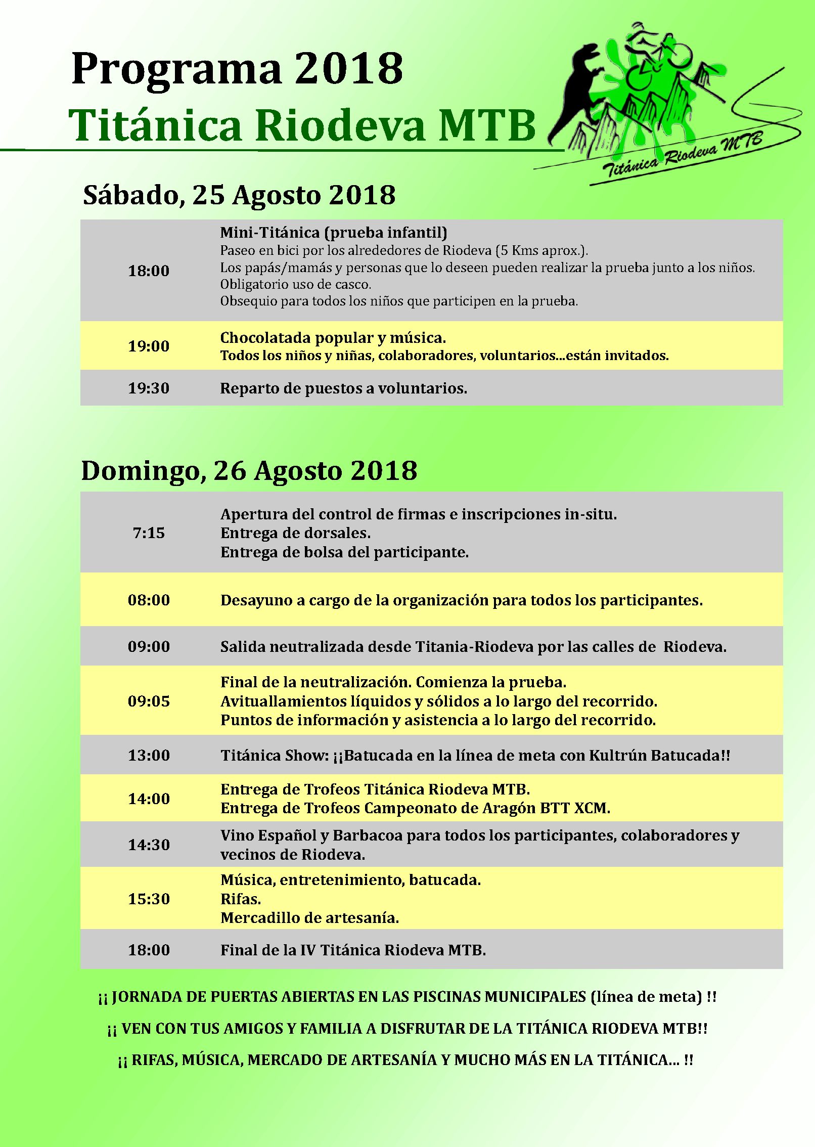 « All Eventos Este evento ha pasado. Titánica Riodeva, Teruel 26/08/2018 12:00 - 14:00 Evento Navegación « Nogueruelas, Teruel Mostra Viva del Mediterrani 2018 » En pleno verano estaremos animando la carrera de MTB de Riodeva, Teruel + Google Calendar+ Exportar iCal Detalles Fecha: 26/08/2018 Hora: 12:00 - 14:00 Evento Categoría: Carreras Populares Pagina Web: http://www.titanicariodeva.com/ Lugar Riodeva Riodeva, Teruel España + Google Map